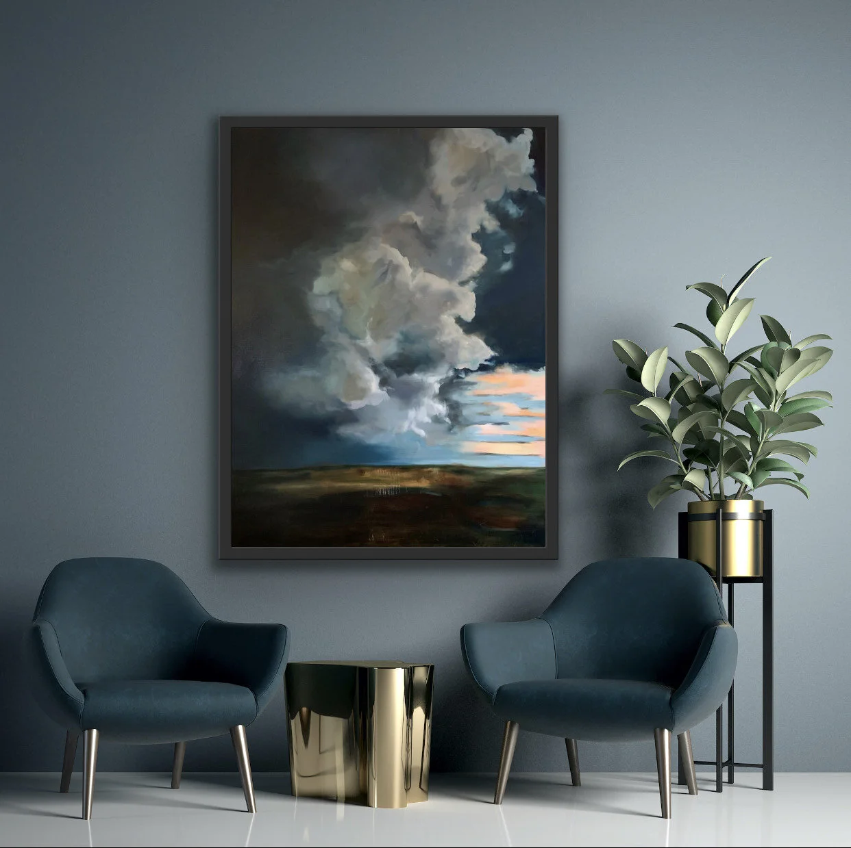 Merging her interests in mental health awareness with the stormy skies of the Midwest, she has been able to capture a wide range of emotions in her beautiful, expressive landscapes.
